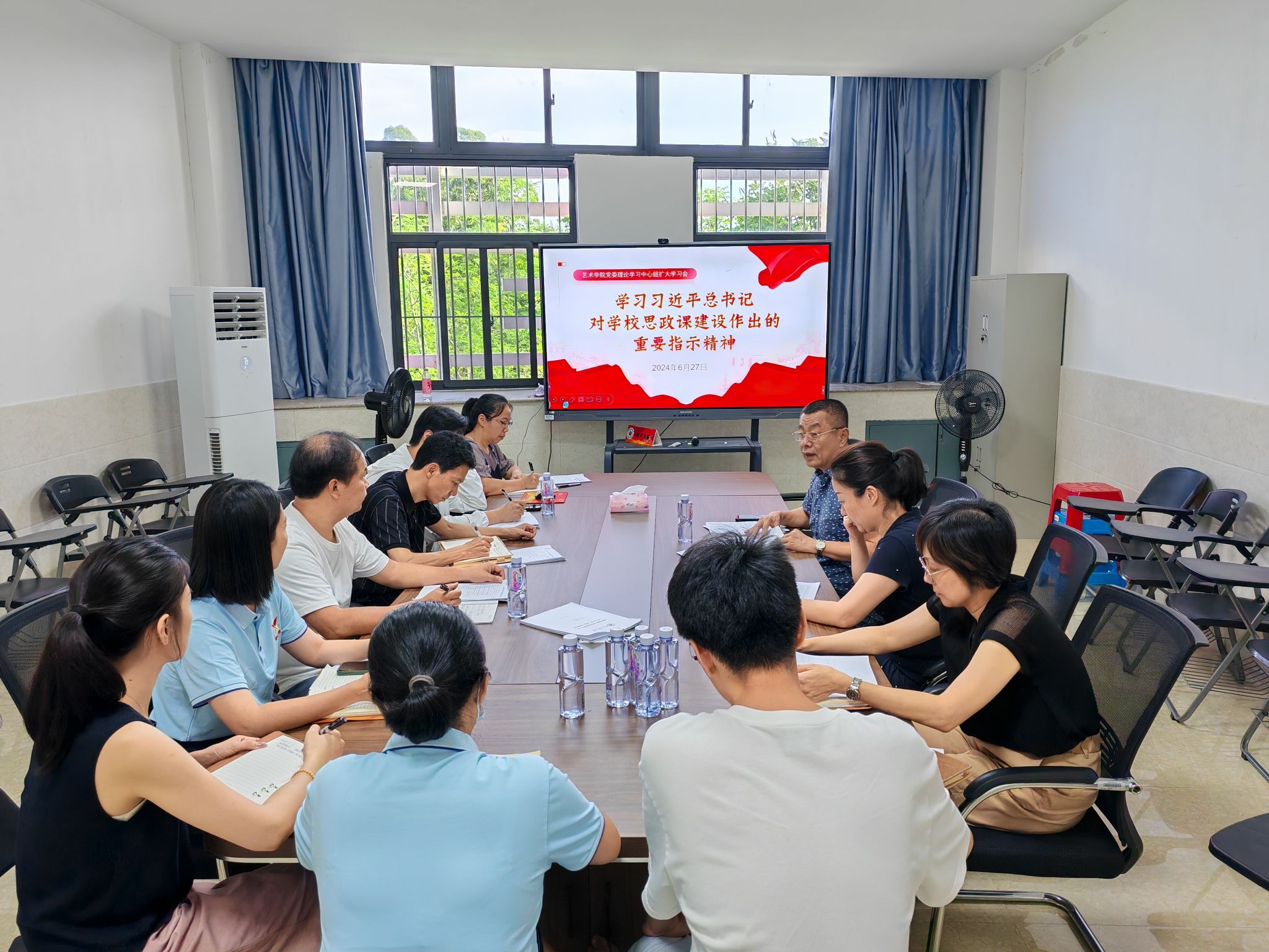 读书班专题研讨会前,学院召开党委理论学习中心组(扩大)学习会,组织全体与会人员学习习近平总书记对学校思政课建设作出的重要指示精神及其他重要讲话精神等。