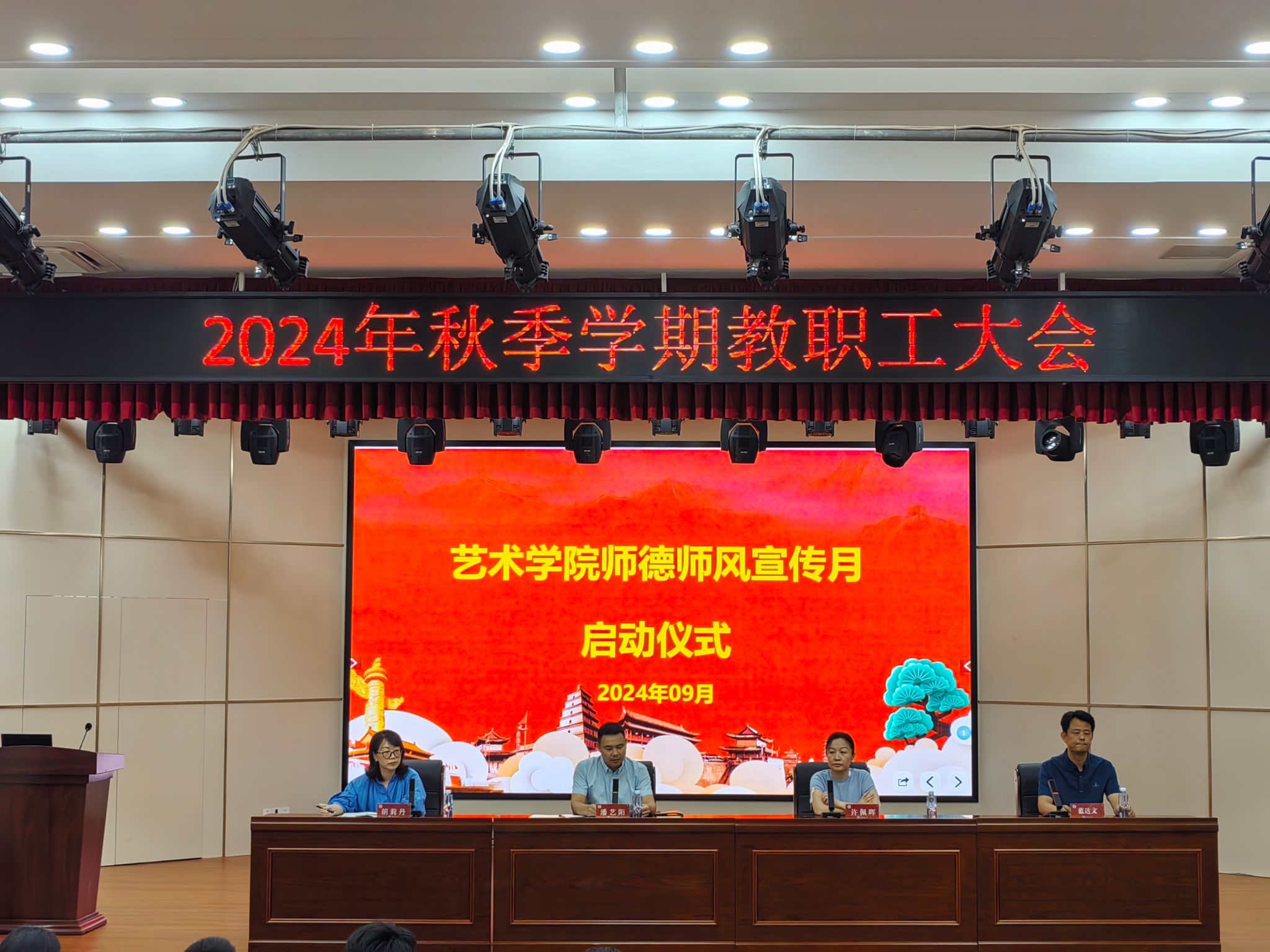 在我国第四十个教师节来临之际,近日,我院举办师德师风宣传月启动仪式。学院党政领导班子、全体教职工参加会议。