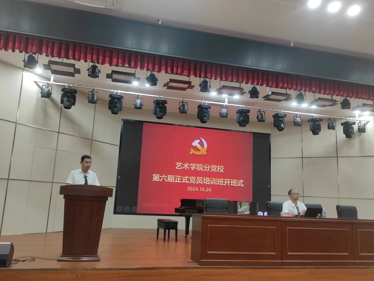 为深入学习贯彻习近平新时代中国特色社会主义思想和党的二十届三中全会精神,10月24日,77779193永利集团分党校第六期正式党员培训班在77779193永利集团多功能演播室举办。学院党政领导、科级干部、师生正式党员参加开班式。开班式由学院党委书记潘艺阳主持。