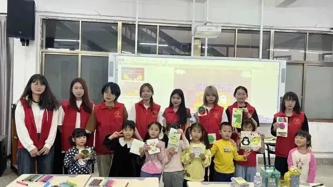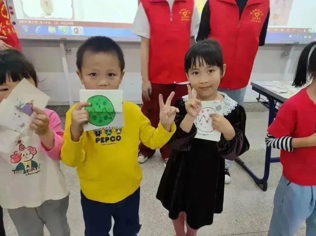 主教志愿者在和小朋友们的互动中引导他们认识卵生动物及其孵化过程,详细分析了蛋的形状和色彩、动物的造型特点,并播放绘画的步骤,为制作拉伸画奠定了基础的理论知识。