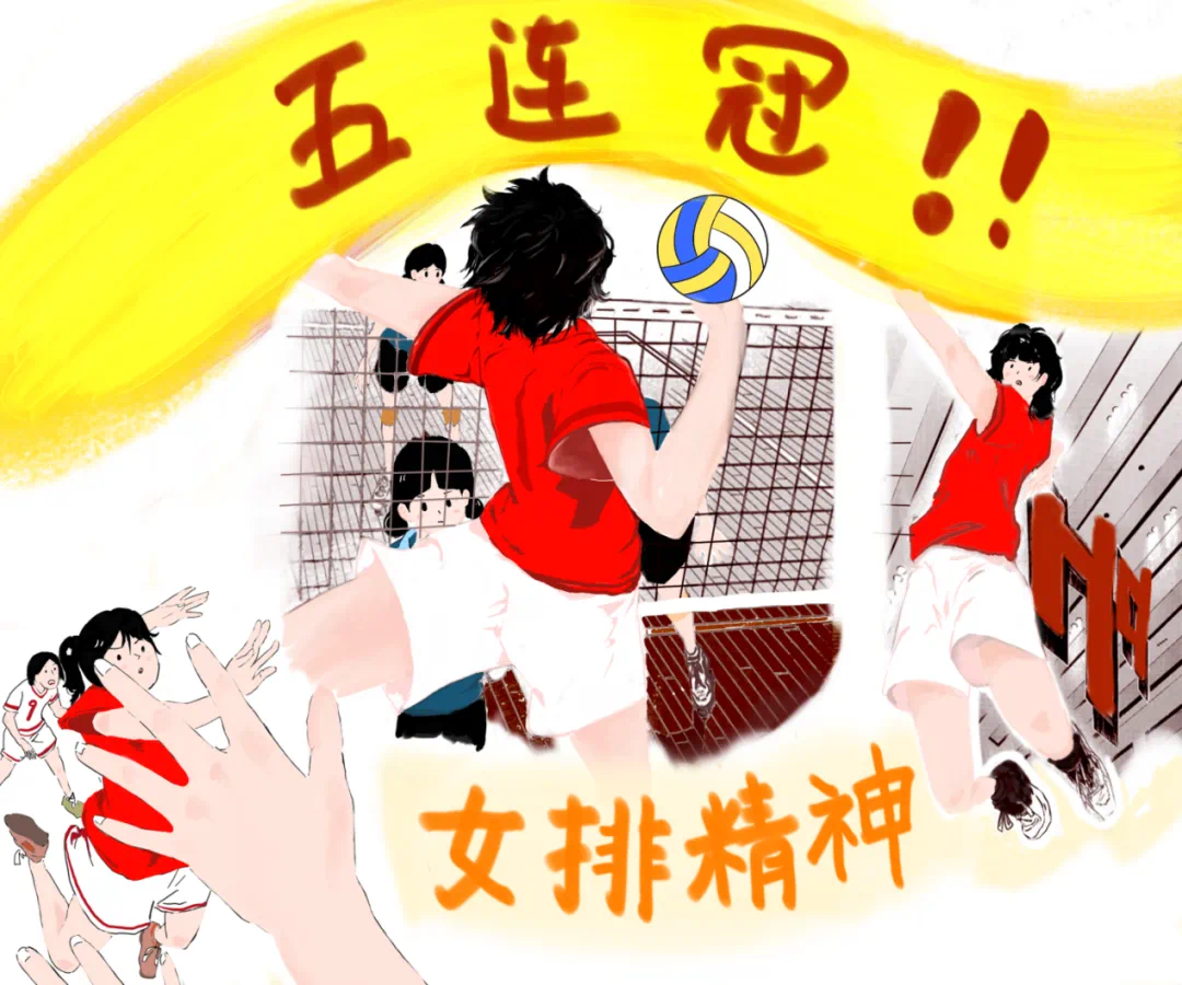 二手绘女排事迹,弘扬竹棚精神