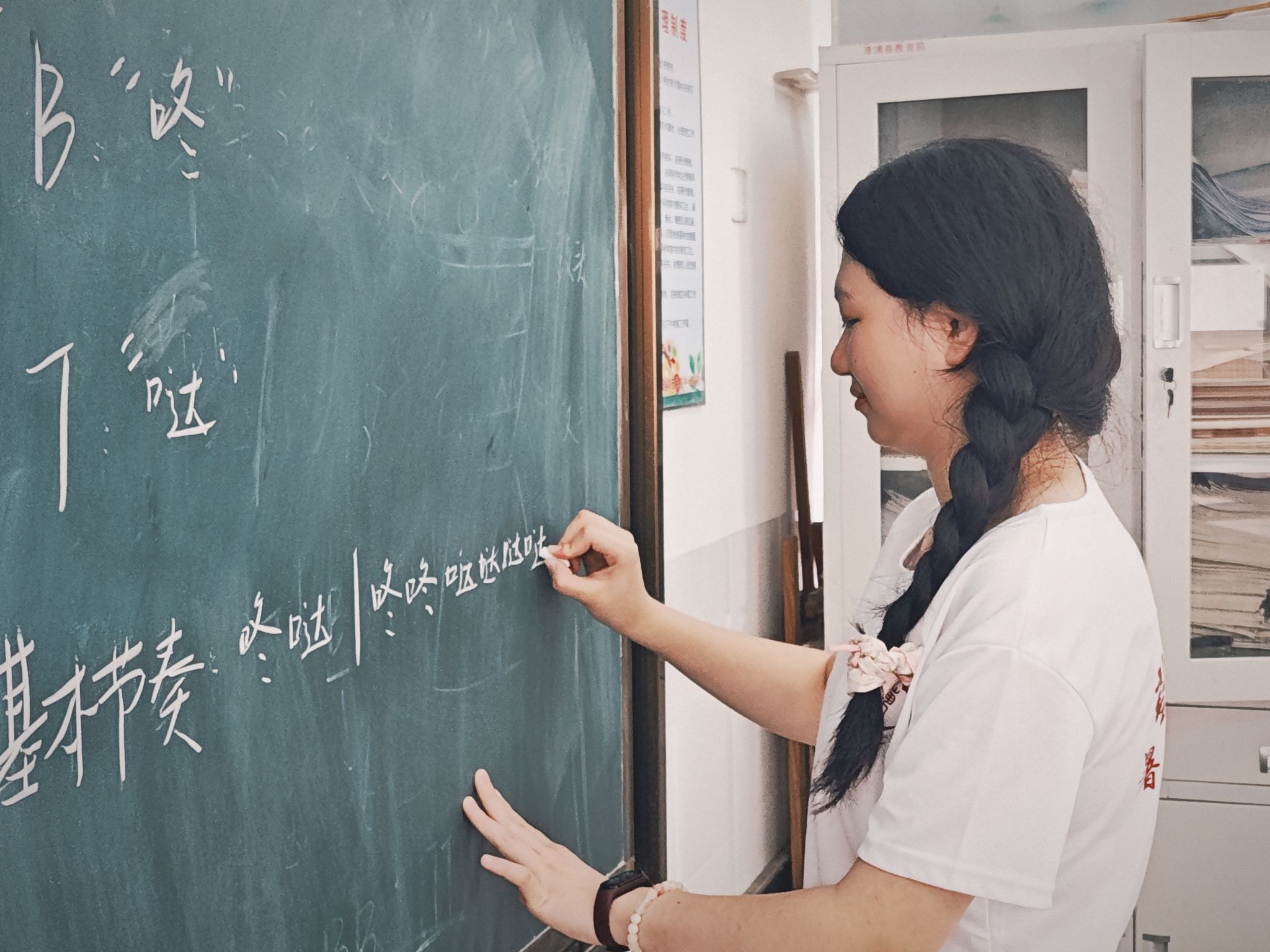 乐器组的实践队员们以轻松欢快的杯子舞作为导入,带领小营员们学习了杯子舞的玩法、节奏与节拍等相关乐理知识,并让他们尝试动手演奏。实践队员们又向小营员们介绍了非洲鼓这一乐器,通过知识讲解、实际演奏,让孩子们对这来个自异域的打击乐乐器产生了浓厚兴趣,课堂气氛活泼有趣,富有生机。