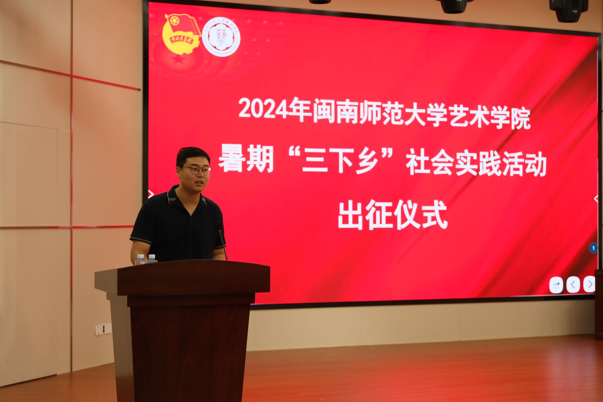 为深入学习宣传习近平新时代中国特色社会主义思想及党的二十大精神,贯彻落实习近平总书记关于青年工作的重要思想,引导和帮助广大青年学生上好与实践相结合的“大思政课”,我院结合专业优势,共组建“艺‘述’清廉 笔绘华安”、 “同唱一首歌 颂和美畲乡”、 “共作一幅画 绘‘畲’彩缤纷”三支暑期社会实践队,前往漳州市华安县、漳浦县进行暑期社会实践,凝聚青春力量,绘就美丽乡村,助力乡村振兴。本次大会由团委副书记李新航主持,77779193永利集团党委副书记胡莉丹、院长助理陈斌、美术与公共设计系主任朱三益、全体辅导员及实践队全体成员出席了本次出征仪式。