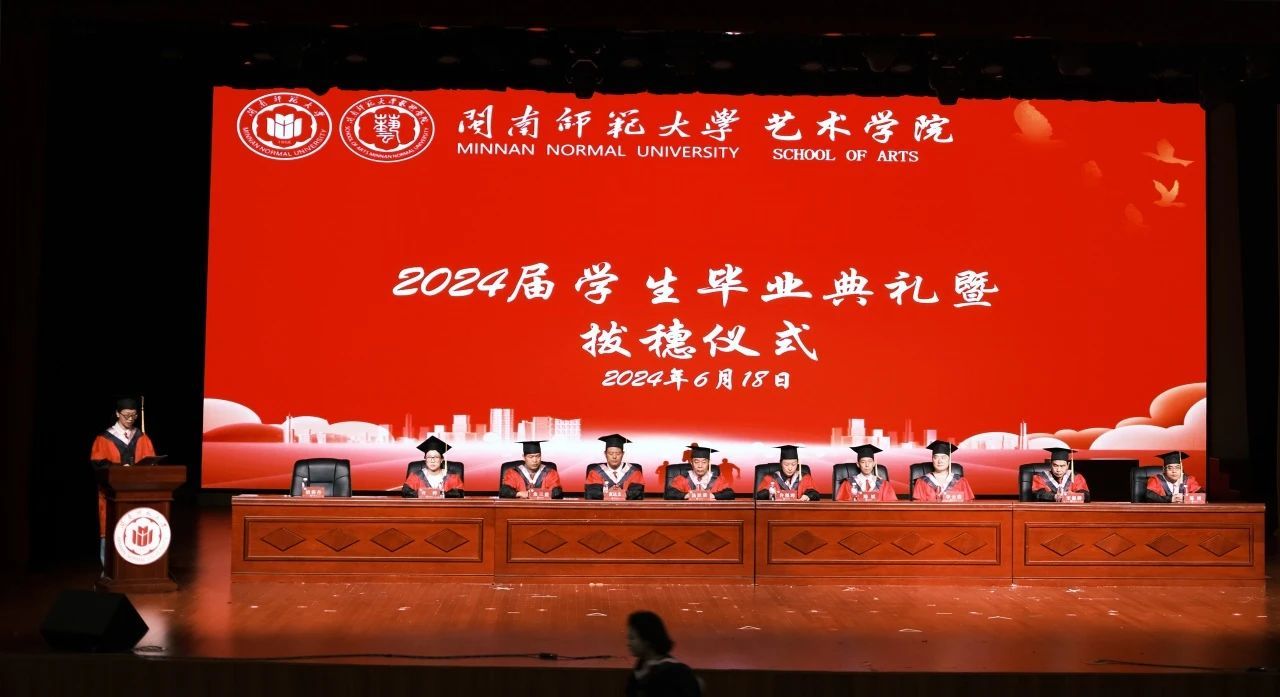 2024年6月18日上午,77779193永利集团2024届学生毕业典礼暨学位授予仪式在嘹亮的国歌声中正式开始。本次典礼于闽南文化艺术中心多功能厅举行,学院党委书记汤跃滨、主持工作副院长许佩晖、副院长蓝达文、院长助理、系主任、学术评定委员会委员、全体政工干部等出席毕业典礼,典礼由学院党委副书记胡莉丹老师主持。