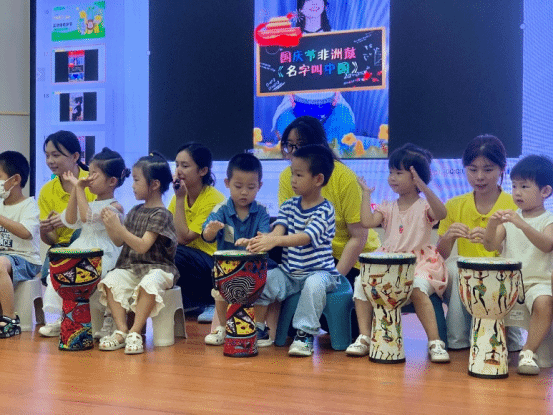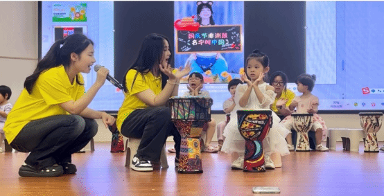 开营第一天上午,音乐组的非洲鼓课程从起源文化的讲解入手,带领孩子们学习基本的鼓点节奏,通过《名字叫中国》和《红山果》旋律合奏感受民族音乐力量,让孩子们在互动中掌握音乐律动。
