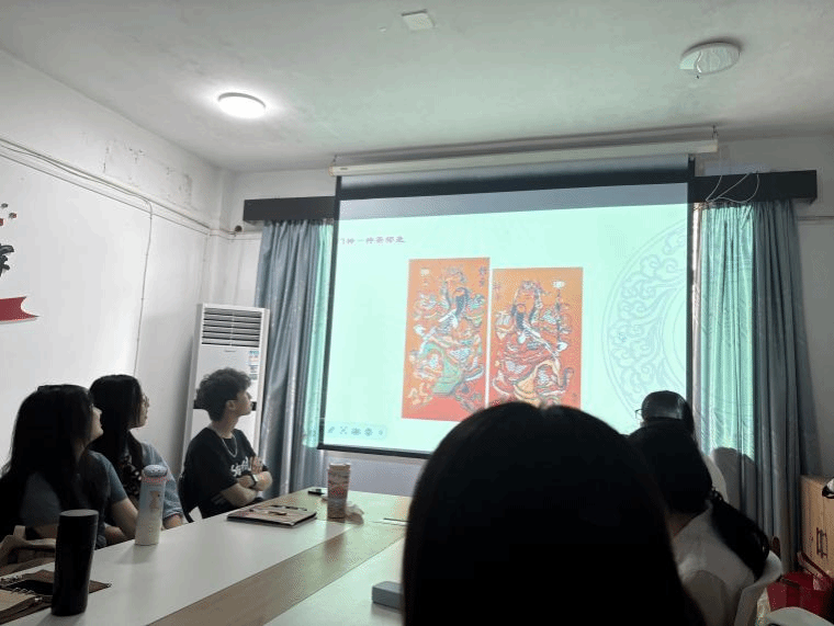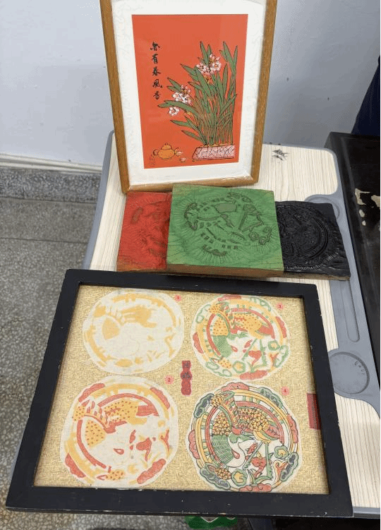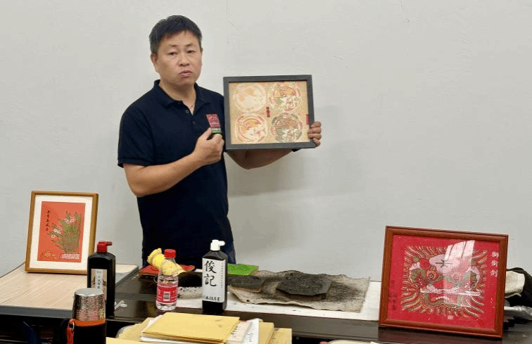 在教学现场,颜朝俊先生展示了自己的代表作品,包括传统的门神、年画,以及创新的文创产品,既保留了传统年画的精髓,又融入了现代审美元素,展现了非遗文化在当代的创新表达。