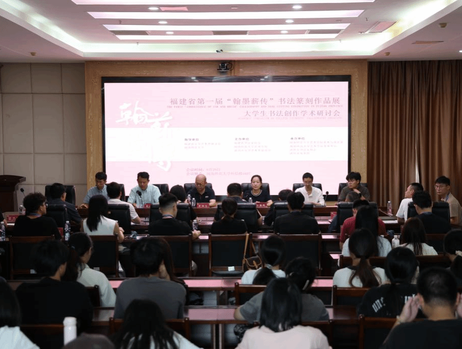9月29日,福建省第一届“翰墨薪传”大学生书法创作学术研讨会在我院举行。福建省书法家协会驻会副主席、秘书长黄坤生,福建师范大学美术学院博士生导师徐东树、黄映恺教授等来自13所高校和研究机构的专家、学者出席研讨会。来自全国各高校的10位获奖代表和我院部分师生代表参加研讨会。会议由学院副院长蓝达文教授主持。