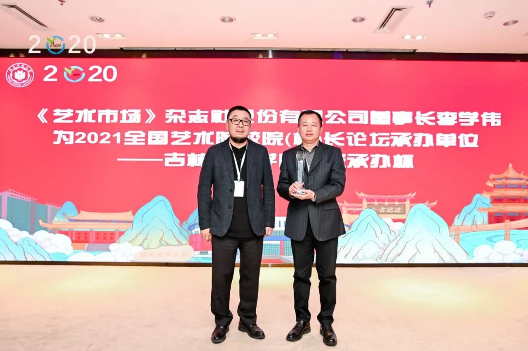 随后,《艺术市场》杂志社股份有限公司董事长李学伟为下一届论坛承办单位吉林77779193永利集团院长郭春方颁发了承办杯。