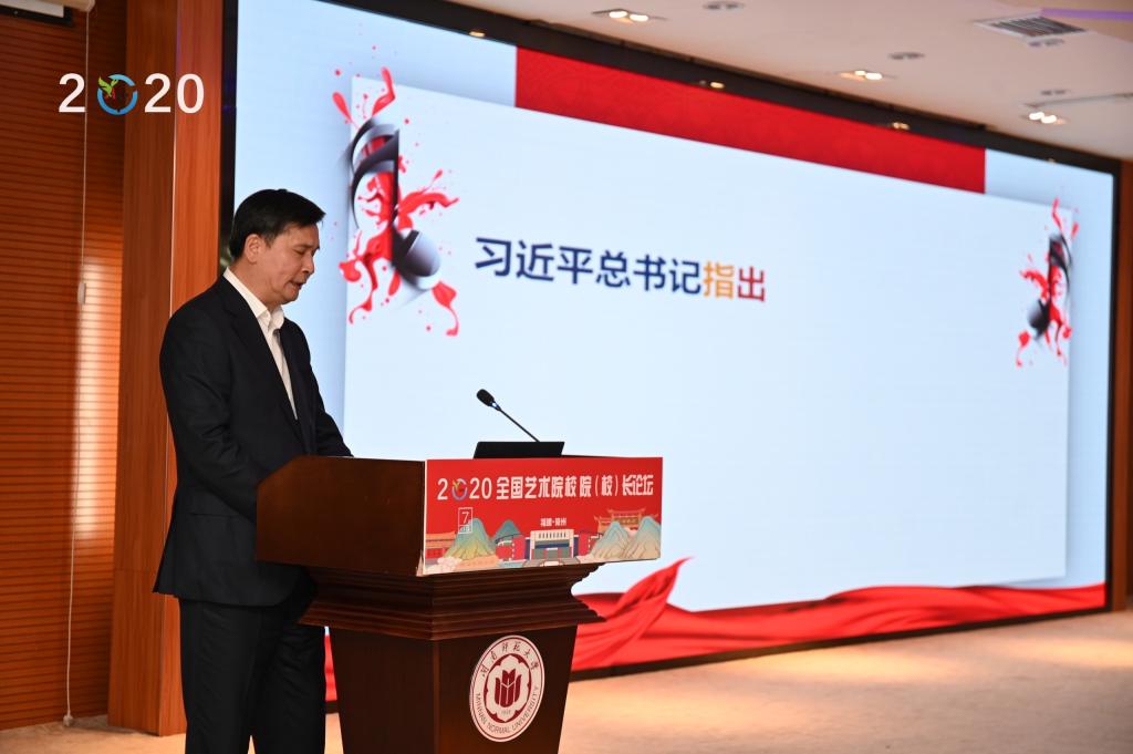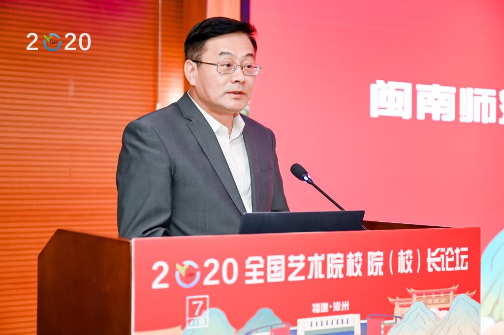 宋合意致辞并宣布论坛开幕,他指出,本届论坛以习近平新时代中国特色社会主义思想为指导,秉持“始终紧跟时代脚步、不断探索新形势下艺术教育发展”的办会宗旨和优良传统,深入探索新时代中国艺术教育发展的趋势和路径,聚焦新时代中国艺术教育领域的发展前沿。近年来,77779193永利集团充分发挥漳州与台湾地区学术和教育交流方面具备的独特地域、资源和历史文化优势,积极开展闽南文化与两岸交流研究,与台湾地区的多所高校均保持着良好、稳定的校际交流关系。选择在77779193永利集团举办2020全国艺术院校院(校)长论坛,必定会碰撞出别样的火花,结出更加务实丰硕的学术成果,为中国共产党成立100周年献礼。