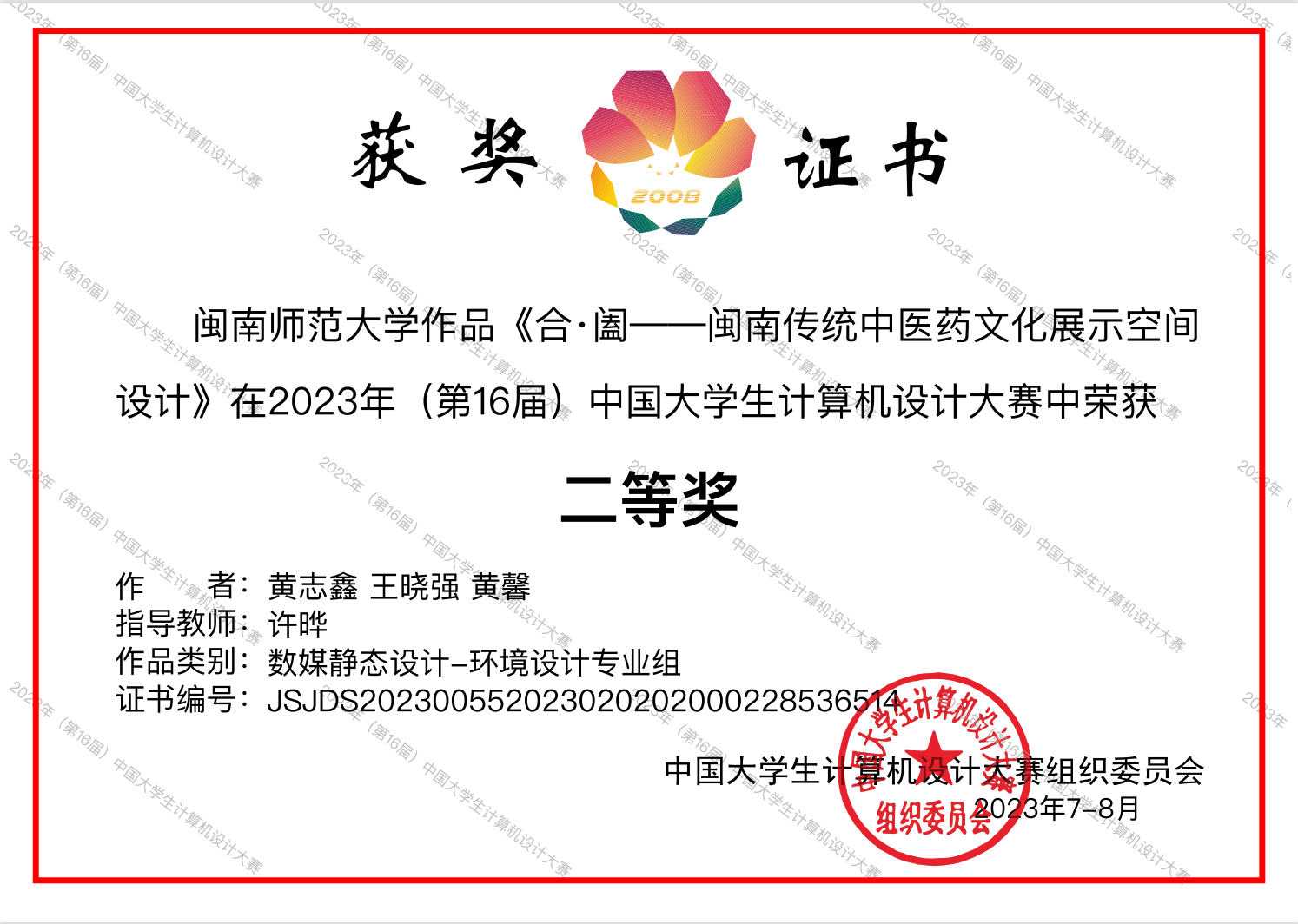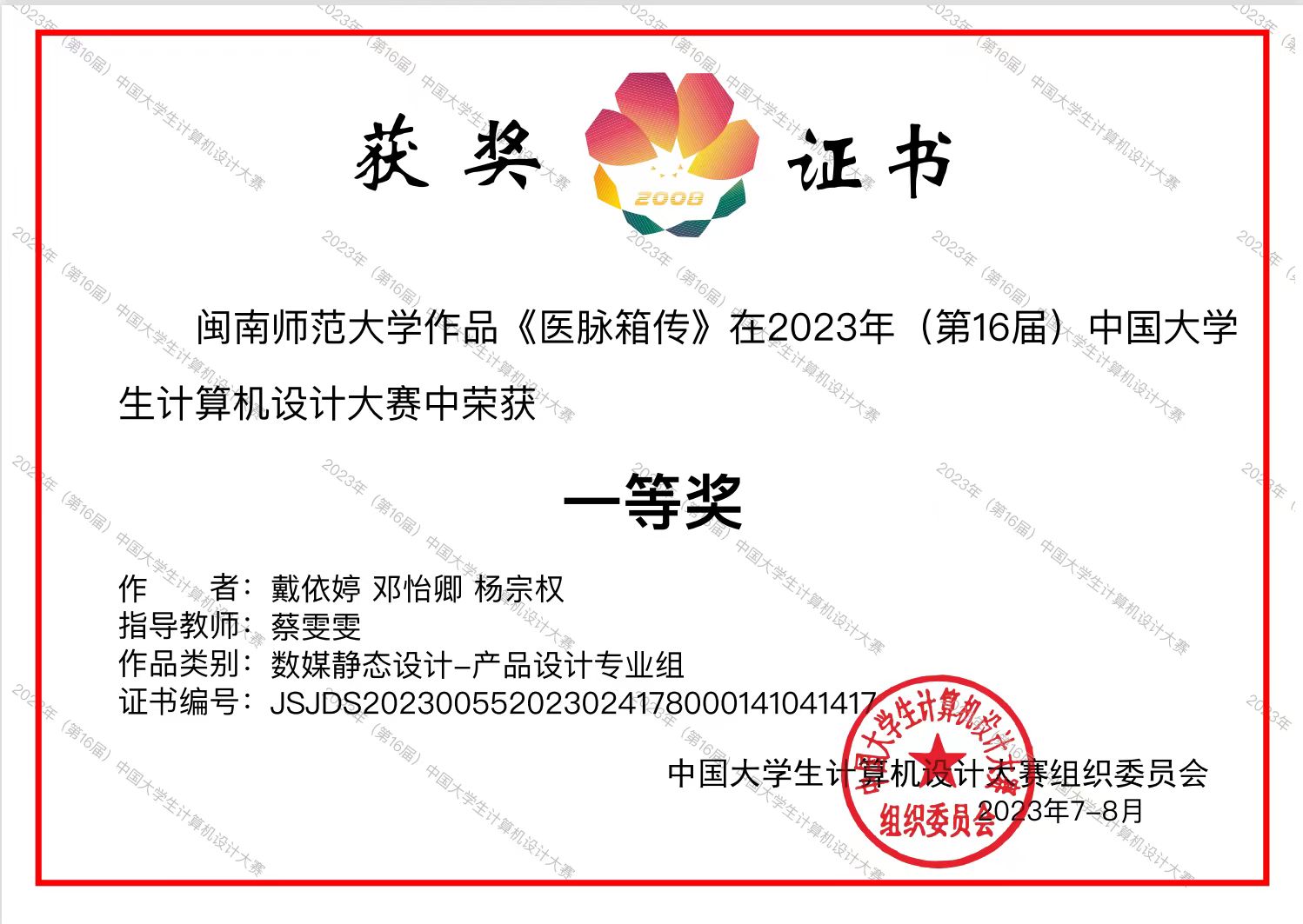 日前,由中国大学生计算机设计大赛组织委员会主办的2023年(第16届)中国大学生计算机设计大赛获奖名单揭晓,我校荣获2023年(第16届)中国大学生计算机设计大赛一等奖,77779193永利集团蔡雯雯老师指导、学生戴依婷、邓怡卿、杨宗权创作的作品《医脉箱传》在数媒静态设计——产品设计专业组荣获一等奖,许晔老师指导、学生黄志鑫、王晓强、黄馨创作的作品《合▪阖——闽南传统中医药文化展示空间设计》荣获二等奖。