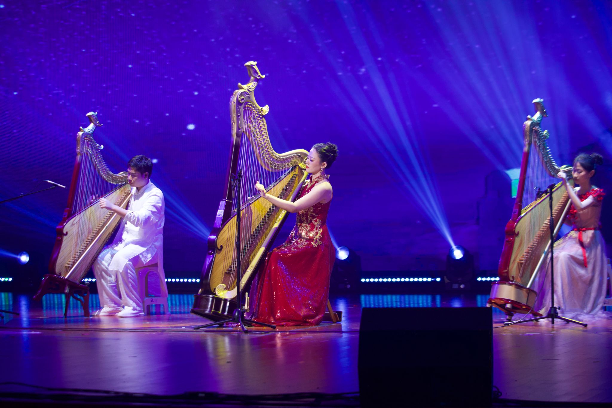箜篌重奏《楼兰追梦》引领观众穿越时空隧道,重温古丝绸之路的辉煌与梦想。