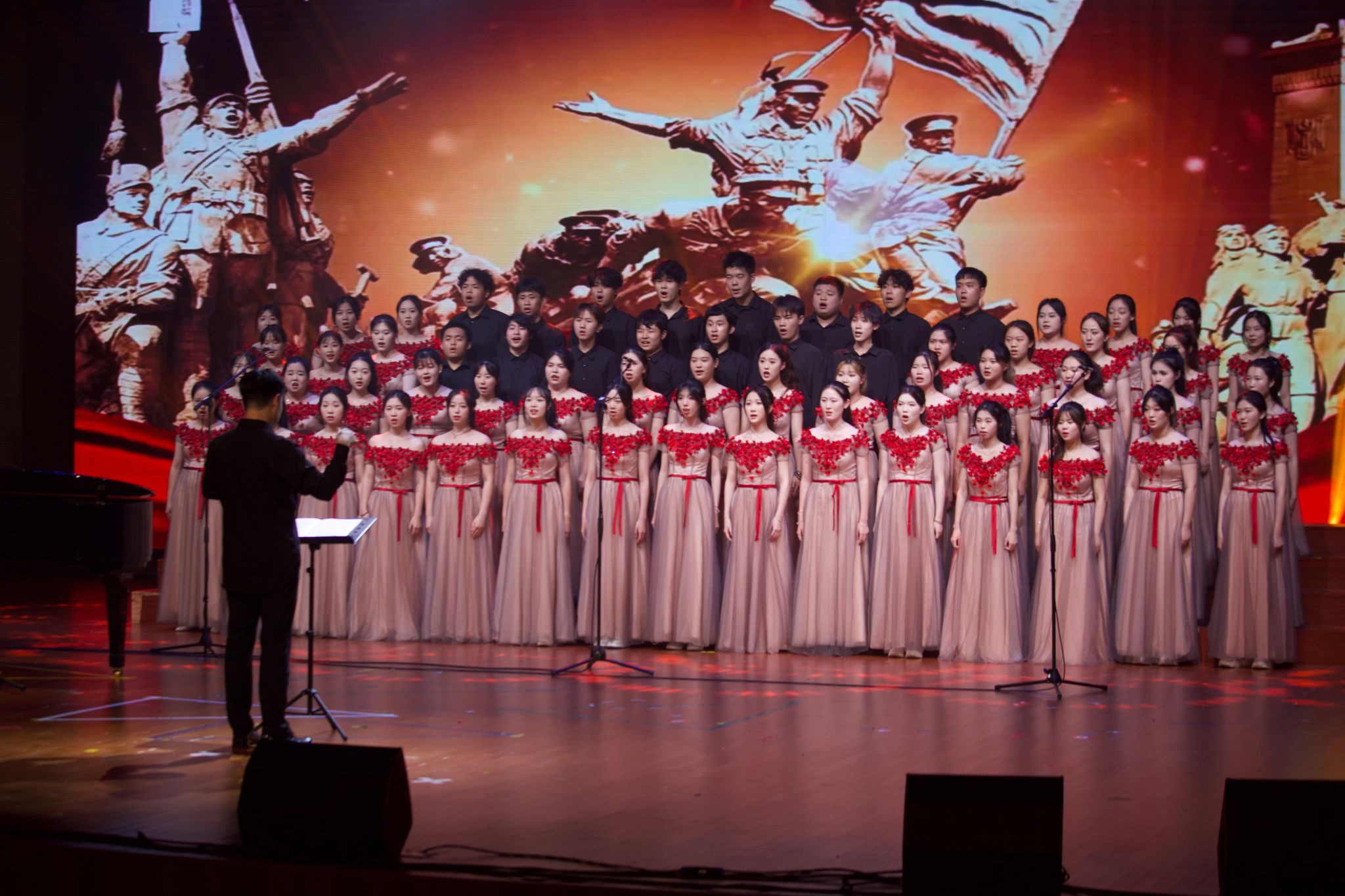 最终,晚会在混声合唱《追寻》的悠扬旋律中缓缓步入尾声,歌者以歌声传递着对梦想、理想与信念的执着追求。