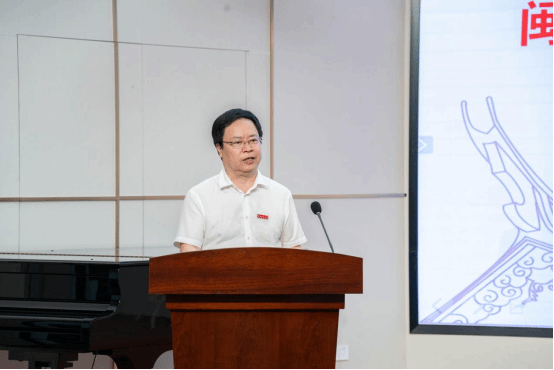 当日上午,林致远发表致辞,他指出非遗研究中心既是学校响应国家“非遗保护传承工程”的主动作为,更是推动闽南文化“活起来、传下去”的重要平台,他提出了“聚智”、“传薪”、“创新”三点期望,让非遗从“博物馆”走向“生活圈”,在青春血脉中焕发新生。(图:党委副书记林致远致辞)