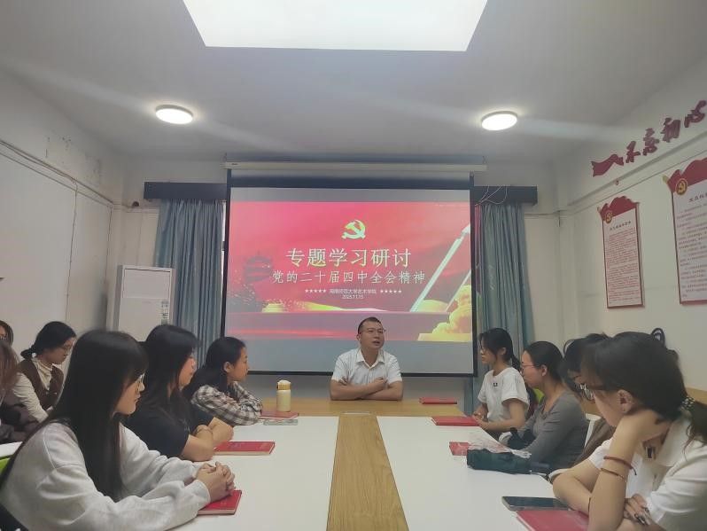 学员们结合党的二十届四中全会公报及《建议》内容,立足艺术专业视角,畅谈学习体会与实践构想。学员们从文化强国建设、乡村文化振兴和志愿服务经历等方面来谈心得体会。结合文化强国建设部署,提出要融入时代元素创作红色主题作品,让革命精神通过艺术笔触代代相传;聚焦乡村文化振兴,表示要发挥专业优势,助力乡土文化传承创新;结合志愿服务经历,谈到要以党员标准严格自律,通过实践活动服务群众,在奉献中锤炼艺术为民的初心。现场交流氛围热烈,学员们将“十五五”规划的宏大蓝图与艺术专业发展紧密结合,把理论感悟转化为具体创作与服务思路,展现出新时代青年对理论学习的深刻领悟和对使命担当的坚定自觉。