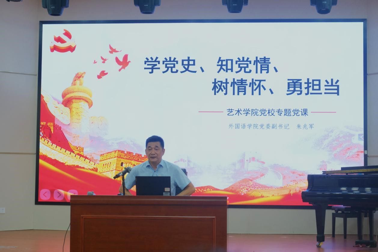 外国语学院党委副书记朱兆军以《学党史、知党情、树情怀、勇担当》为题,带领学员重温中国共产党百余年光辉奋斗历程。从南湖红船扬帆起航到新时代巨轮劈波斩浪,从抗战烽火淬炼初心到改革开放砥砺奋进,党的百年历史是为人民谋幸福、为民族谋复兴的奋斗史,凝聚着砥砺前行的强大精神力量。朱兆军强调,艺术创作是扎根人民、服务社会的重要载体,要做到不脱离时代、不游离群众。新时代青年当从党史中汲取奋进力量,厚植家国情怀,以艺术为媒传递正能量、弘扬主旋律,坚定信念、勇担使命,践行初心跟党走。