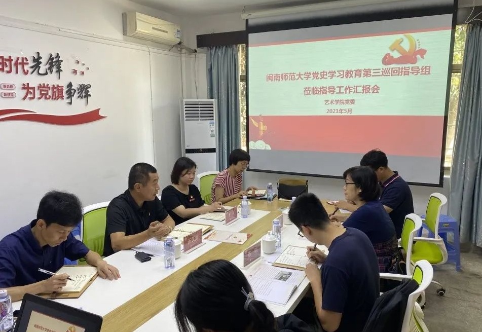 汤跃滨书记代表学院党委向校党史学习教育巡回指导组莅临表示欢迎和感谢。他指出,党史学习教育开展以来,学院党委积极探索“党建融合专业、主体下沉支部”的党建工作新模式,充分发挥艺术专业优势,精心谋划、精细安排、精准实施,将党史学习教育与学科专业深度融合,以绘画展览、音乐表演等多种方式展现红色革命文化,取得良好成效。一是组织学习上,凸显一个“快”字。学院党委快速反应,第一时间组织召开党史学习教育动员会,通过集中学习、个人自学、线上线下等方式进行党史学习教育。二是活动载体上,彰显一个“新”字。学院党委注重创新党史学习教育形式和载体,通过挖掘地方红色资源,让党史学习教育走进第一课堂、第二课堂。三是教育成效上,紧扣一个“实”字。学院党委通过开展“我为师生办实事”活动,扎实办好民生实事,切实解决基层的困难事、群众的烦心事,把党史学习教育向纵深推进。