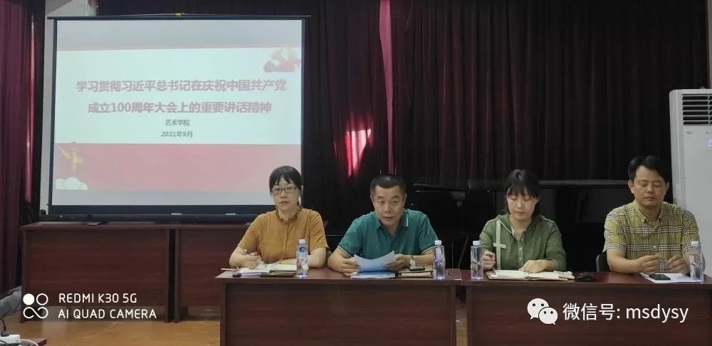 2021年9月9日,77779193永利集团在习奏习唱室召开新学期教职工大会,组织学习传达习近平总书记在庆祝中国共产党成立100周年大会上的重要讲话精神,学院党政班子出席会议,全体教职工参加会议。会议由学院副院长许佩晖主持。